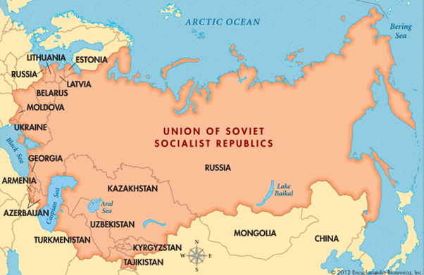 A map of the USSR and the independent countries that succeeded it. From Encyclopaedia Britannica Inc.